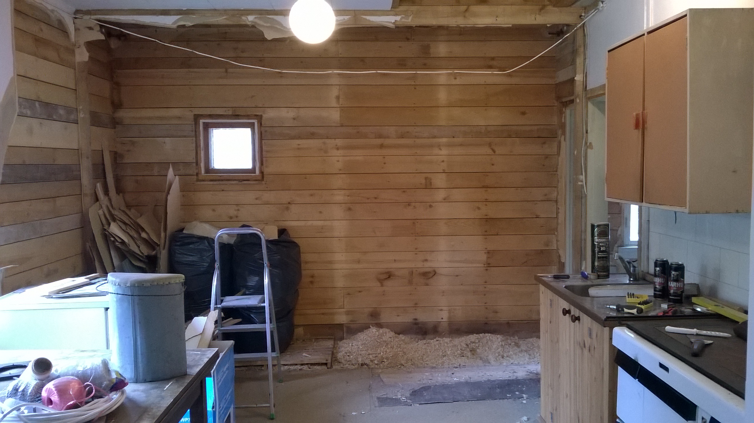 We were fortunate to have the help of Pekka’s brother Veli-Matti for a day and a half. It really made a difference having him there to help. He and Pekka managed to get the wood stoves out of the kitchen and the new dining room. Plus they made a few trips to the Rosk N’ Roll recycling center to dispose of trailers-full of discarded metals, electronics and demolition debris.