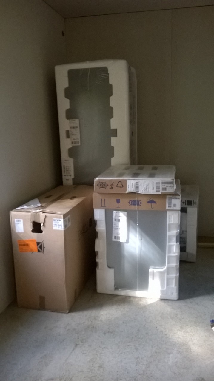 We’ll see how things go tomorrow with the drywall. Hopefully the cabinets arrive and can join the appliances…