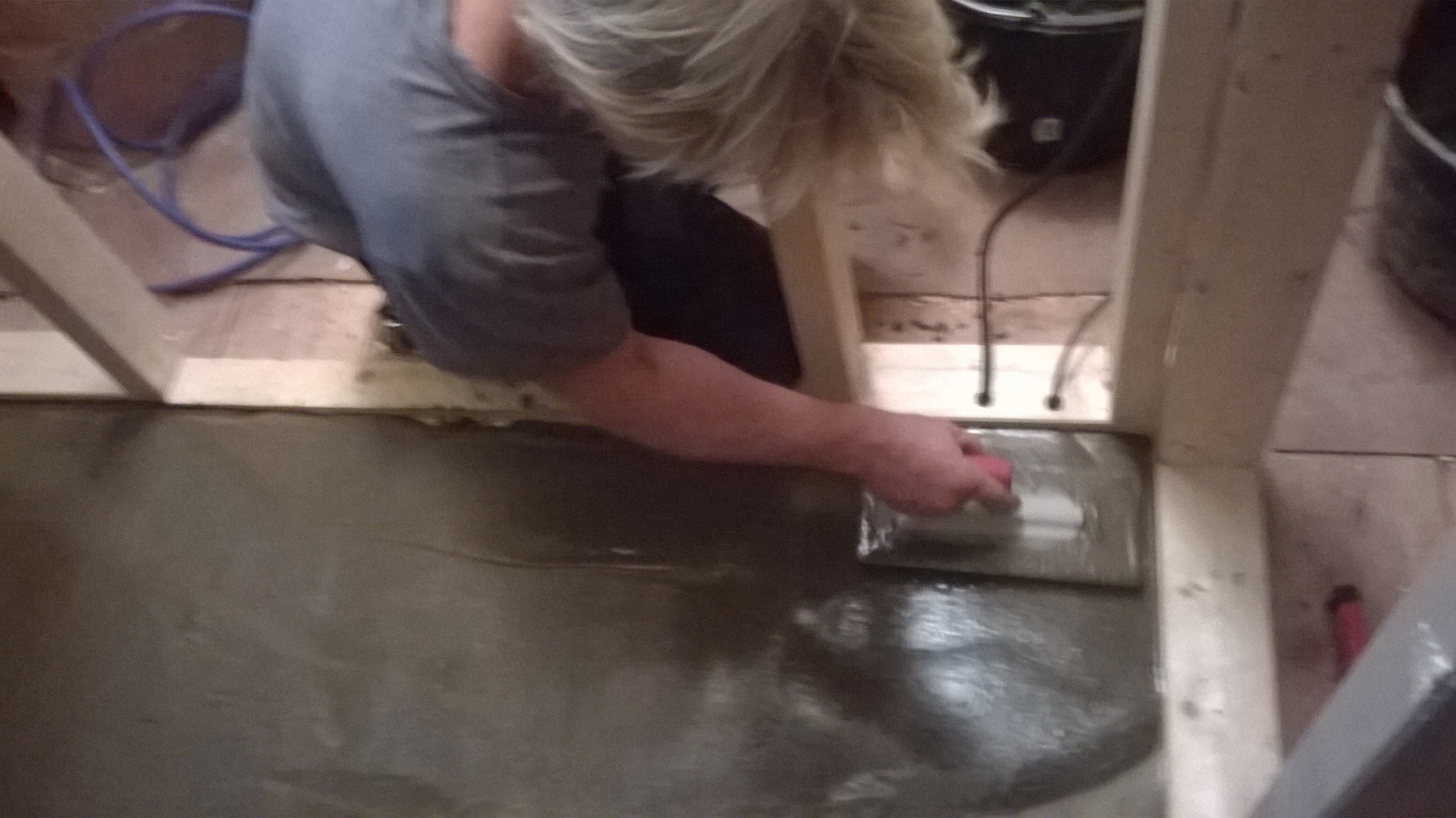 Pete mixed up a concrete soup to set our in-floor heating element for that upstairs bathroom I mentioned earlier.