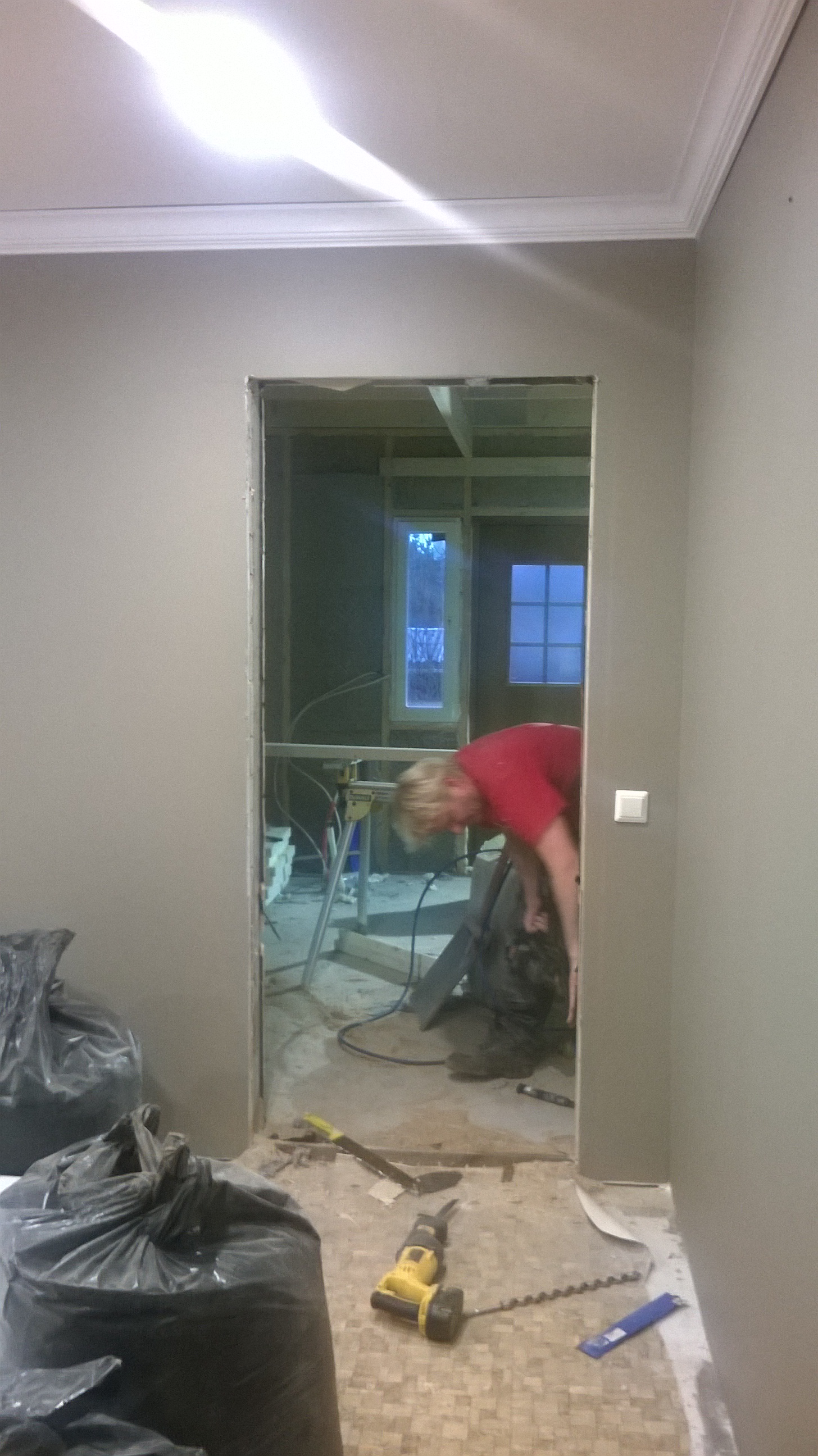 Cutting the opening from the old house to the new construction was a big step in the right direction!
