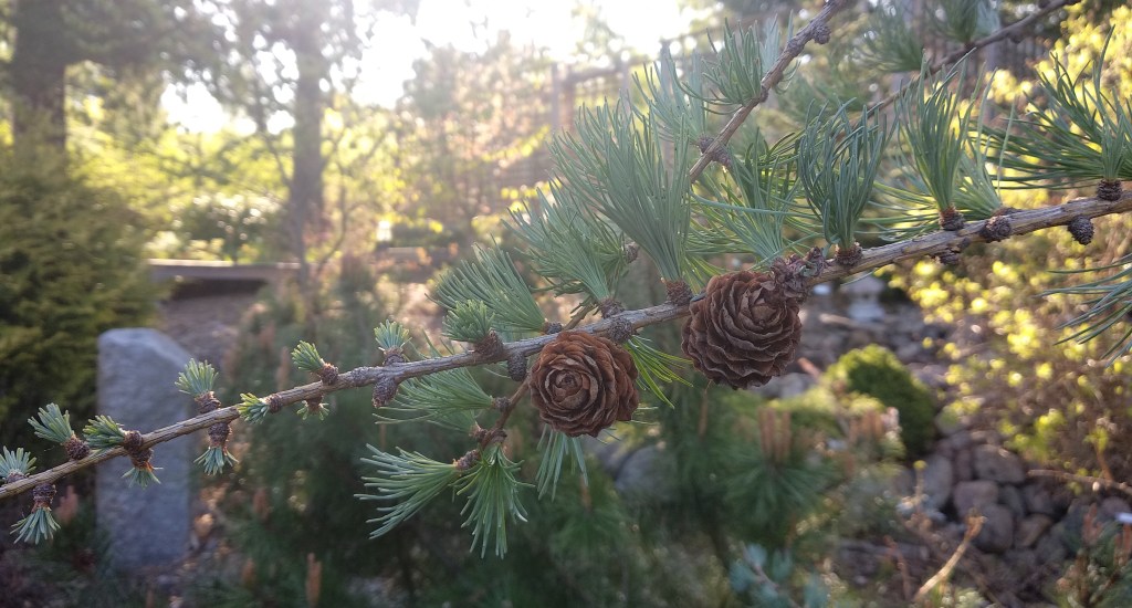 Larch – Larix kaempferi ‘Blue Rabbit’ Ours is now quite possibly in the 2+ meter tall range, but since it’s only been with us a short time, the width and full height are still a few years away.