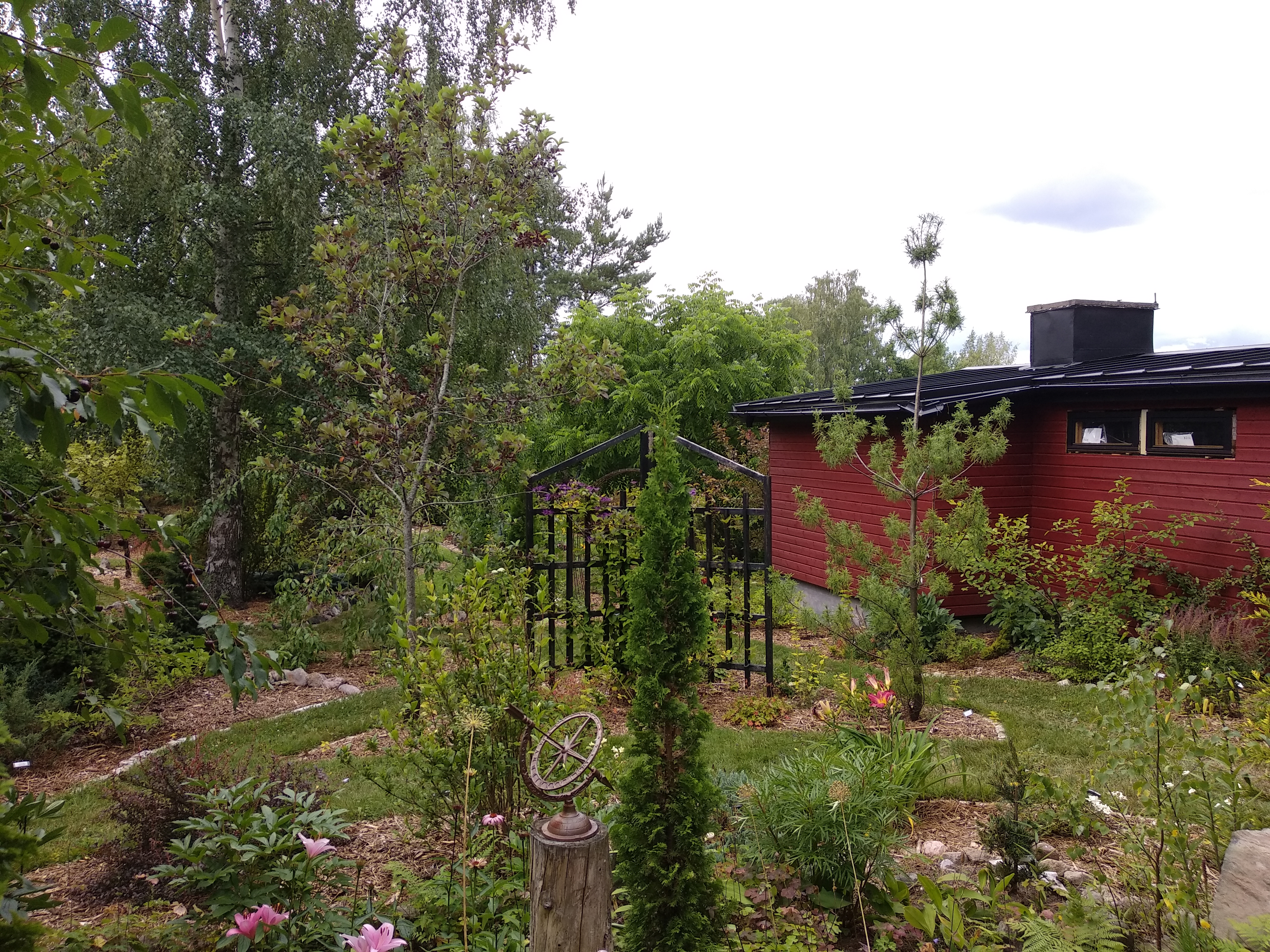 For all that has happened and changed during our relatively brief stint here, our garden continues to be a work-in-progress. Seasonally, we are trying to make the best use of our allotted space by filling the senses with color, visual interest, and aroma from blooming plants. Native plants as well as numerous exotic trees, bushes and plants are all assembled together in a very impracticable, but wholly enjoyable gardening experience – at least we think so! With so many varieties of plants tried, tested and thriving – there is much to take away as information for your own garden spaces. Much of what you will see is tagged with identification labels, so that you can research the plants that you find interesting. There are many plants we would have loved to have grown here, but they would not survive Finnish winters without great assistance from us. We have experienced losses of even fully-hardy plants – I shudder to think of what the realities of trying to grow tender & sensitive plants would entail.