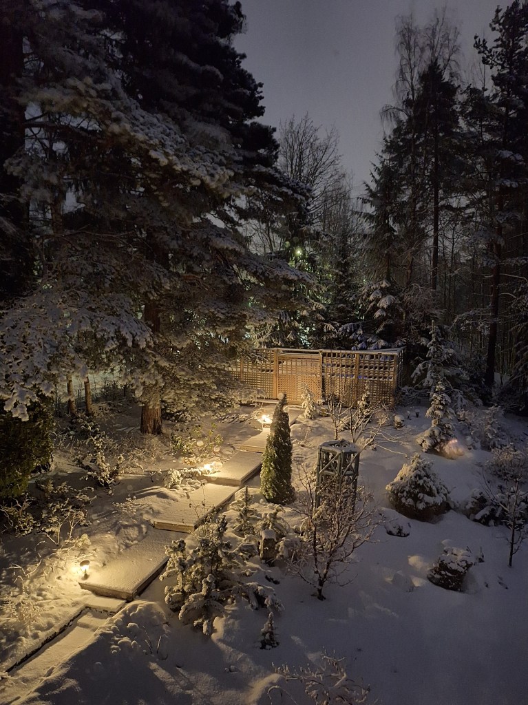 The yard photo with the snow and soft light is a good substitute – really lovely and peaceful!