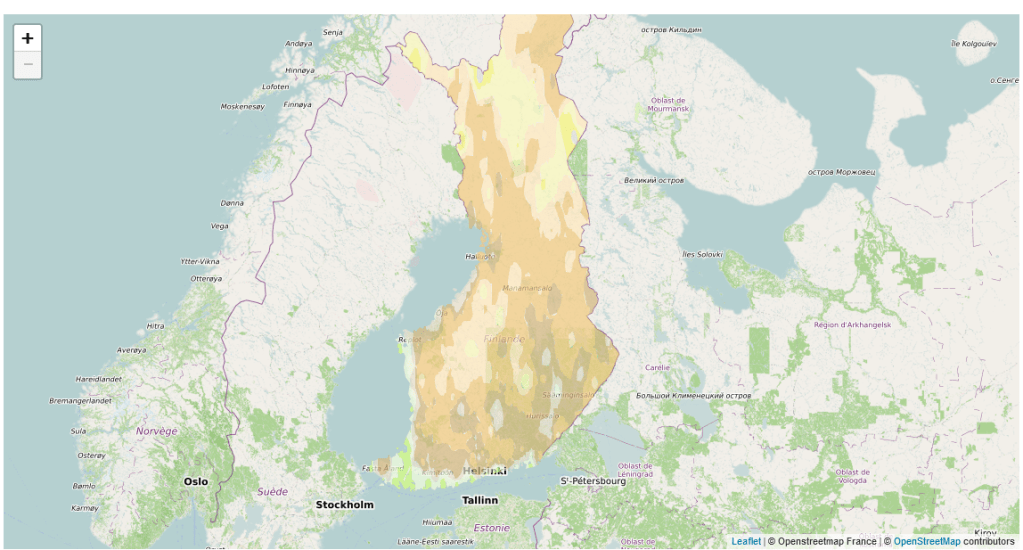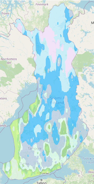 Lohja is considered to be 6a -23.3C to -20.5C click HERE to activate an interactive map of Finnish hardiness zones – it looks like the following picture